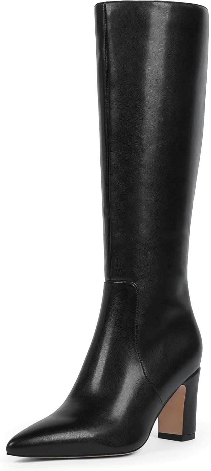 Knee High Boots for Women 3-Inch Chunky Heel Pointed Toe Side Zipper Fall Boots Dressy Comfortable Fashion