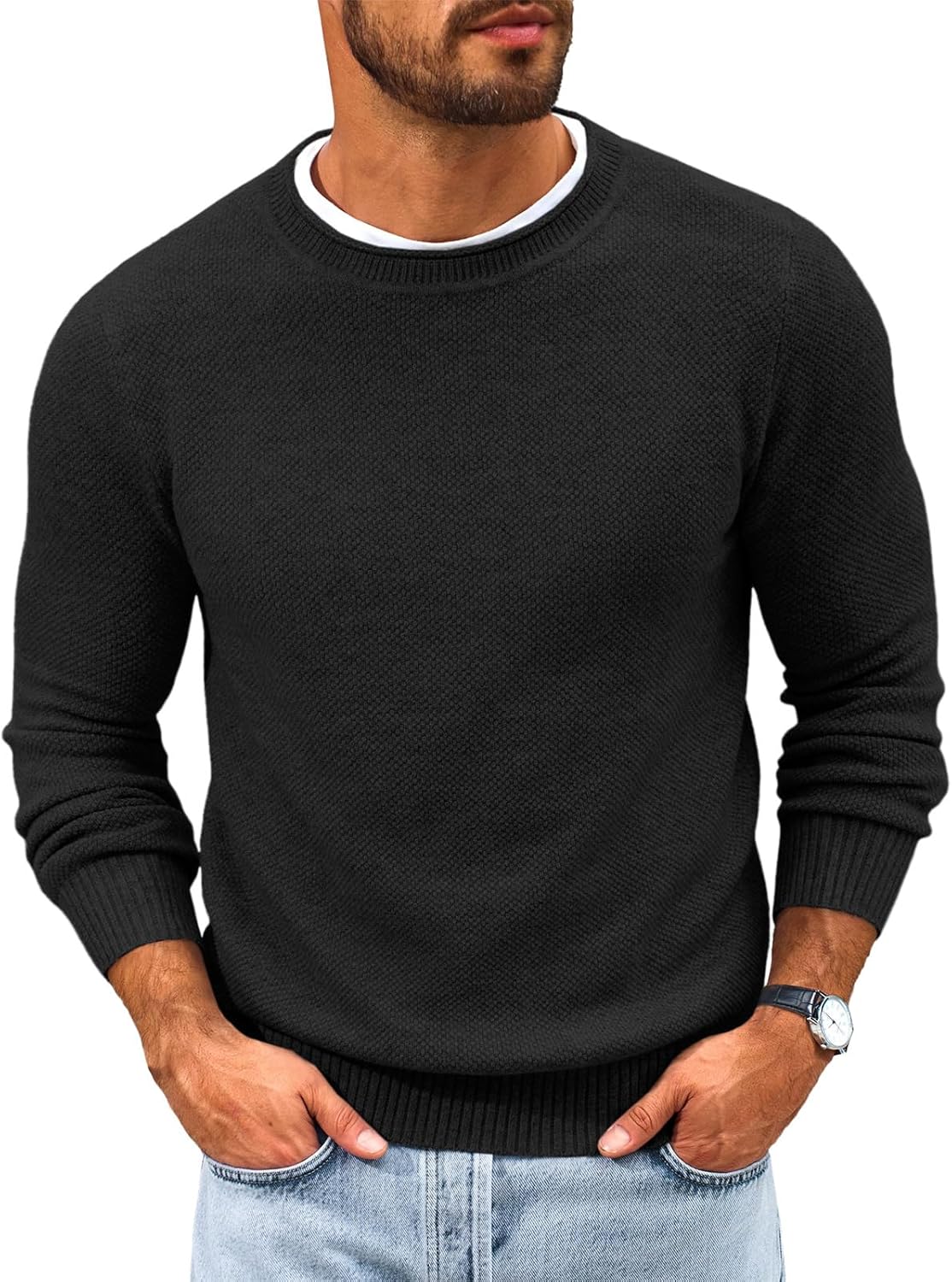Runcati Mens Crewneck Sweater Casual Textured Knitted Thermal Pullover Sweaters