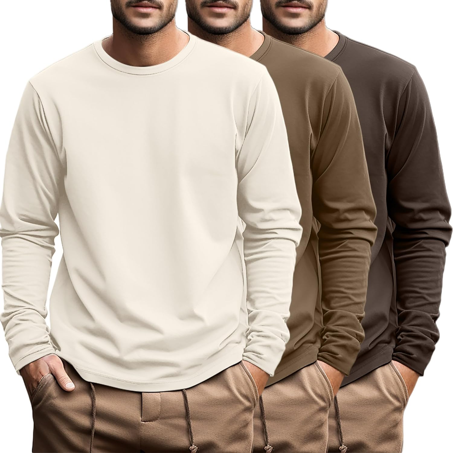 Ficerd 3 Pack Men's Big and Tall Shirts Long Sleeve Cotton Tee Crew Neck Oversize Tops Casual Loose Fit Knitted T Shirts