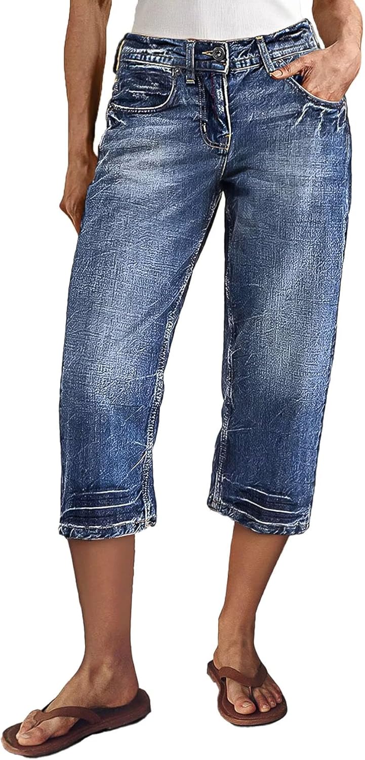 Flamingals Women's Wash Mid Rise Straight Leg Capri Jeans