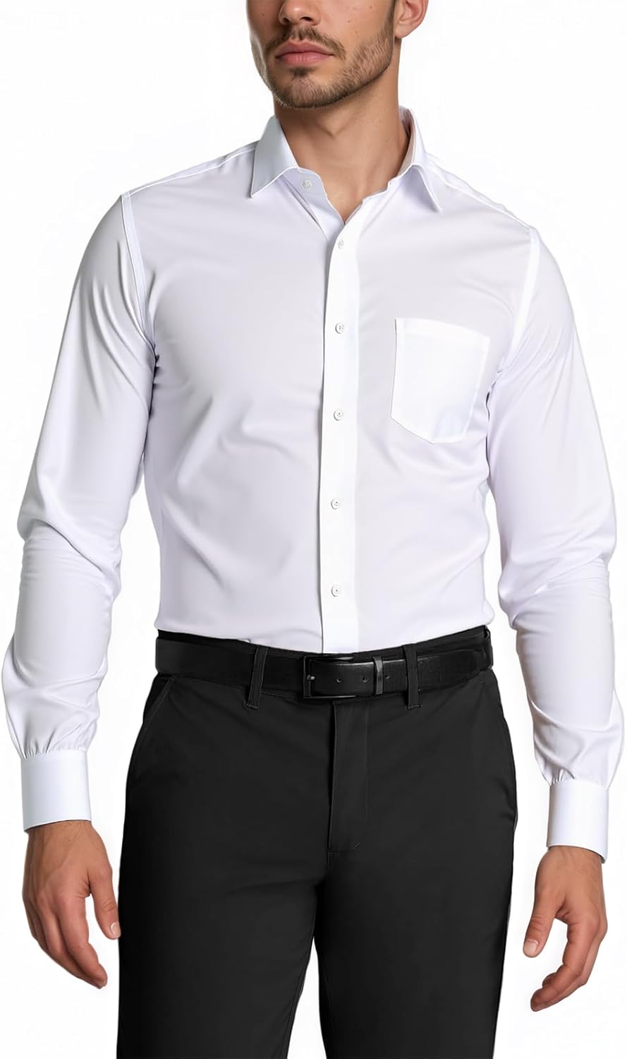 Mens Dress Shirts Long Sleeve Collared Stretch Solid Formal Wedding Dating Business Casual Button Down Shirt Pocket