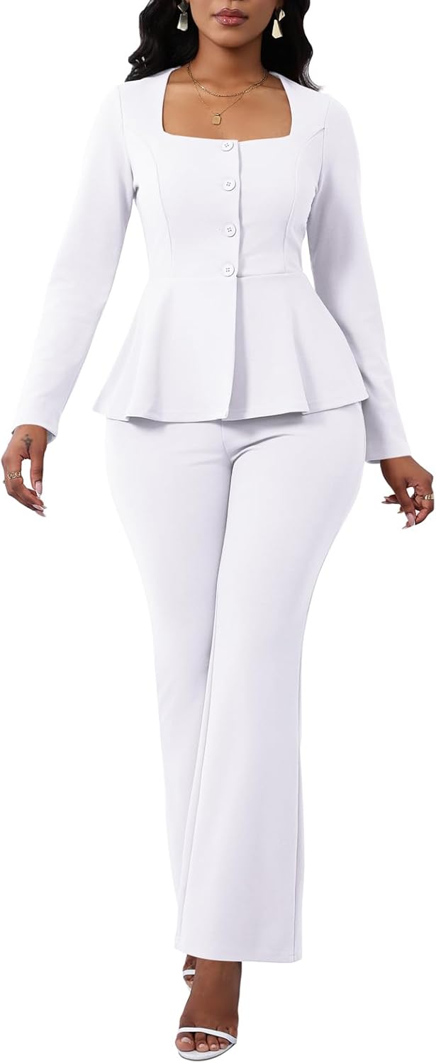 Ekaliy Women's 2 Piece Pants Suit Long Sleeve Blazer Flare Pant Set Casual Office Work Outfits