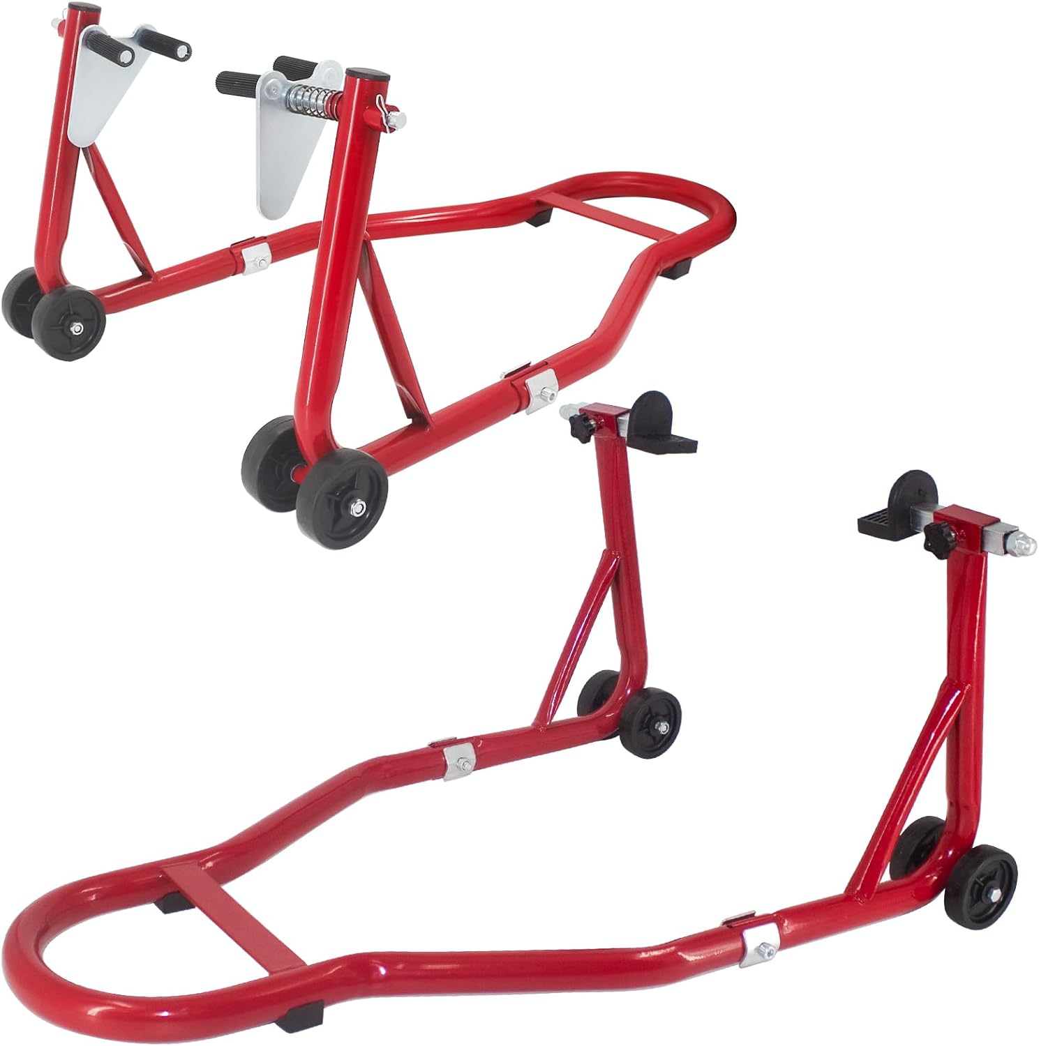 Motorcycle Stand Front & Rear Combo, 990 lbs Capacity Heavy Duty Paddock Stands with Adjustable U & L Swingarm Spool Lift, Universal Motorcycle Rear Stand for Yamaha Honda Kawasaki Suzuki BMW, Red