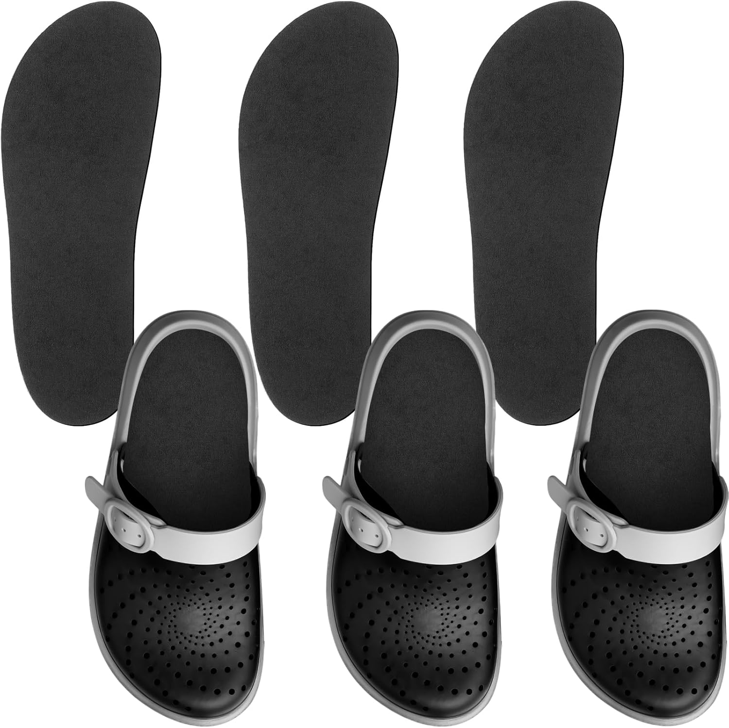 3 Pairs Shoe Insole for Clog Garden Shoe Liner Washable Barefoot Insert Pad for Women Men Nurse (Black)