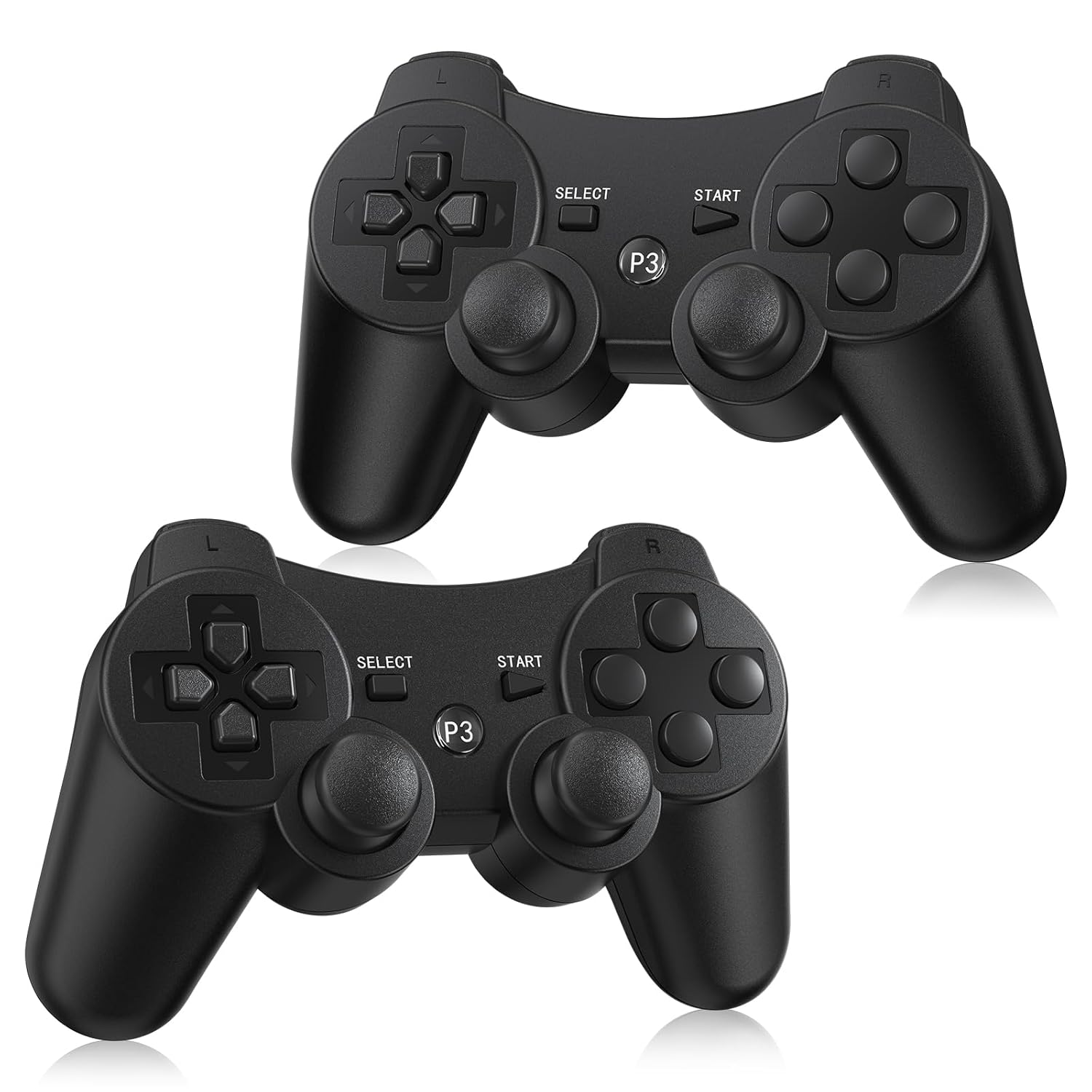 Yinjie 2 Pack Wireless Controller for PS3, Compatible with Playstation 3, with 2 Charging Cables - Black
