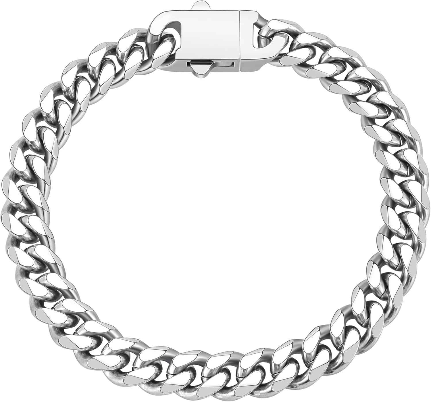 Fiusem Mens Silver Colored Bracelets for Men, Stainless Steel Cuban link Bracelet, 5mm/7mm/8mm Width, 7.1"/7.5"/7.9" Length Jewelry
