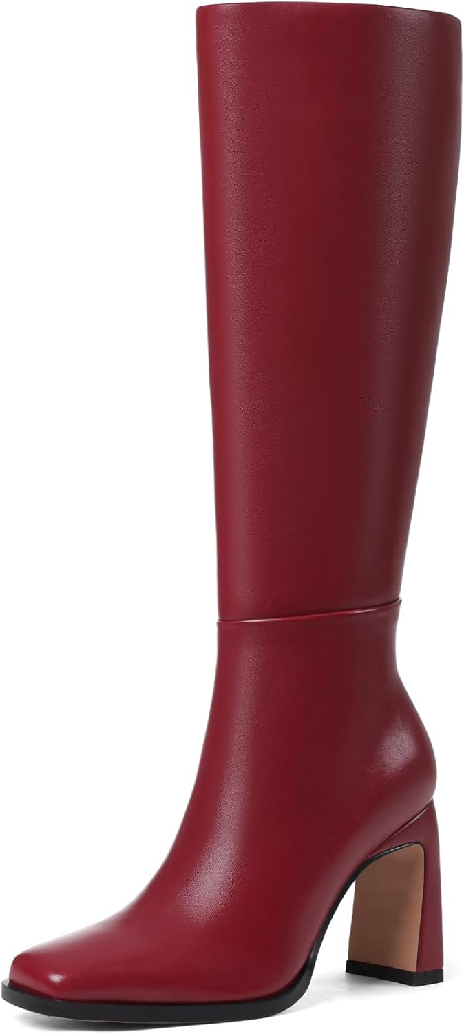 Knee High Wide Calf Boots for Women Square Toe Chunky Heel Leather Tall Boots Fall Winter Fashion Dress Long Booties