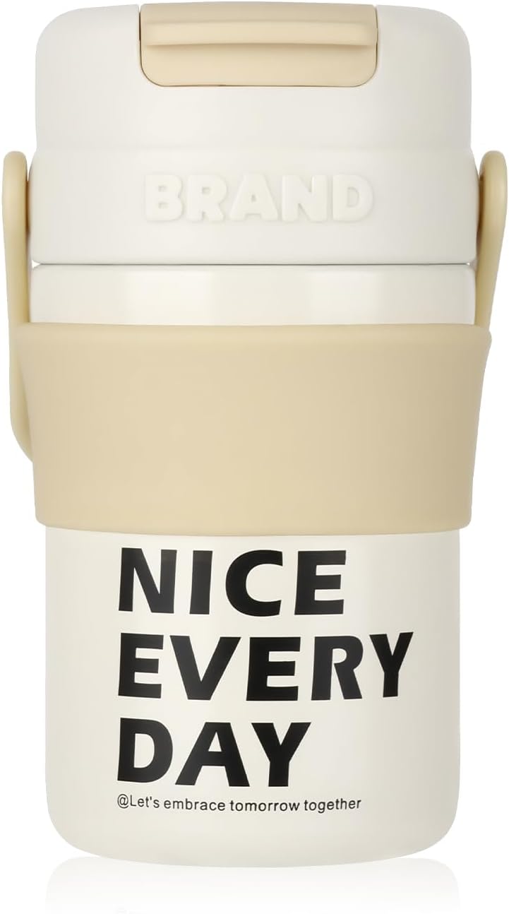 Thoughtful design: The coffee mug comes with a straw for convenient drinking, and the travel thermos has a handle for easy carrying. It is suitable for both indoor and outdoor use. This travel cup is also compatible with most car cup holders.