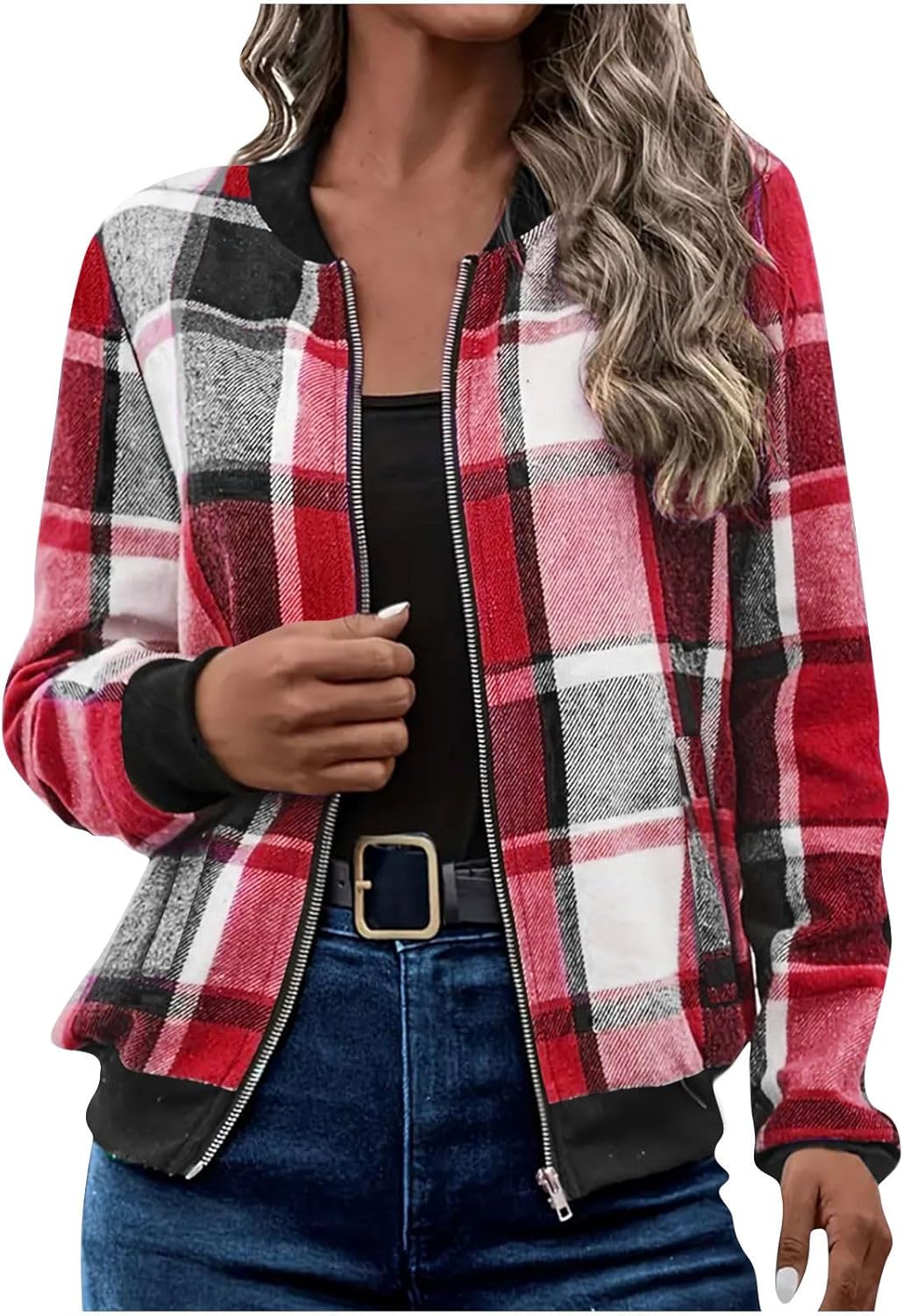Zip up Jackets for Women Trendy Bomber Jacket Casual Coat Fall Winter 2025 Fashion Outerwear Windbreaker with Pockets