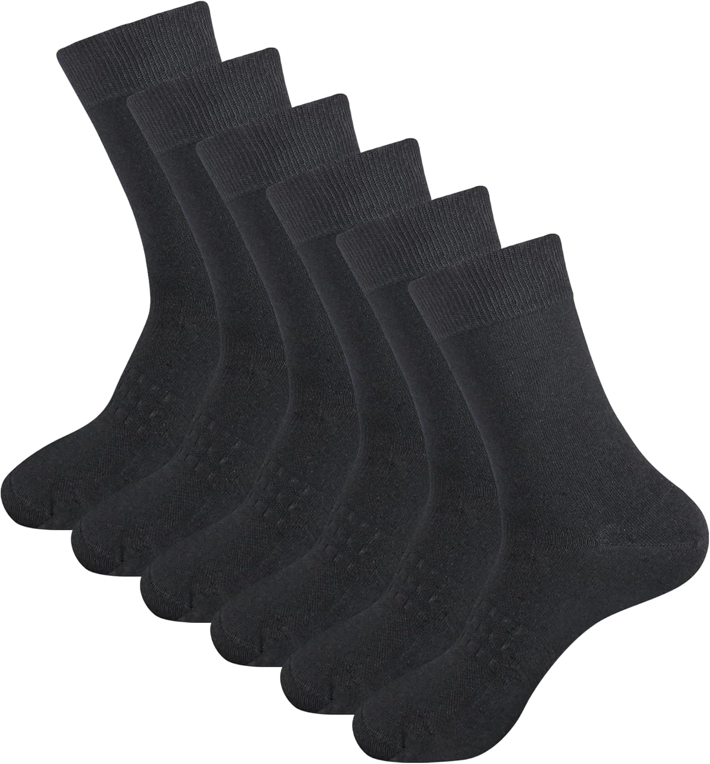 Toes&Feet Mens and Womens 6-Pack Black Seamless Anti Stink Odor Resistant Moisture Wicking Quick Dry Business Crew Dress Socks, Size 7-12